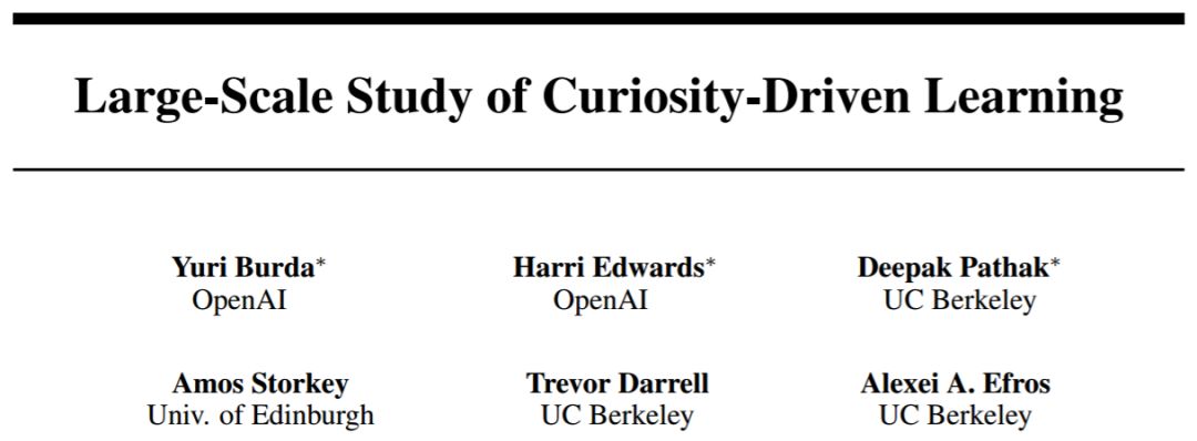 1 引言 强化学习(RL)已经成为训练智能体以完成复杂任务的一种普遍的方法。在 RL 中,通过与任务匹配的奖励函数最大化来训练智能体策略。对于智能体来说,奖励是外在的,并特定于它们定义的环境。只有奖励函数密集且定义良好时,多数的 RL 才得以成功实现,例如在电子游戏中的「得分」。然而设计一个定义良好的奖励函数非常困难。除了「塑造」外在奖励外,也可以增加密集的内在奖励,即由智能体本身产生奖励。内在奖励包括使用预测误差作为奖励信号的「好奇心」和阻止智能体重新访问相同状态的「访问计数」。其思想是,这些内在奖励通过引导智能体对环境进行有效地探索,以寻找下一个外在奖励,从而缩小与稀疏外在奖励间的差距。 但如果完全没有外在奖励呢?发展心理学家认为内在动机(即好奇心)是人类发展早期阶段的主要动力:婴儿看似无目标的探索,其实可以学习到终身有益的技能。从玩《我的世界》到参观动物园,都没有外在奖励。调查表明,在特定环境中,仅使用内在奖励对智能体进行预训练,可以使它在新环境下对新任务进行微调时学习得更快。然而到目前为止,仅利用内在奖励的学习还未被系统地研究过。 在本文中,研究者对只由内在奖励驱动的智能体进行了大规模的实证研究。他们选择了 Pathak 等人提出的基于动力的好奇心的内在奖励模型,因为它可扩展、可简化并行,所以非常适用于大型实验。该方法的中心思想是将内在奖励看作在预测智能体当前状态的行为结果时的误差,即智能体学习的正向动力的预测误差。研究者深入研究了 54 个环境中基于动力的好奇心:如图 1 中的电子游戏、物理引擎模拟和虚拟 3D 导航任务。 图 1:54 个环境中的研究快照。研究者证明了智能体能够在不使用外在奖励或结束信号而只利用好奇心的情况下取得进展。