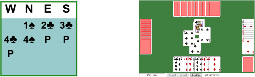 当然这里有个问题是我们只做了叫牌,没有做打牌,叫牌完了之后游戏就结束了,并以双明手(double-dummy)的分数,即所有牌摊开来打,来定胜负。