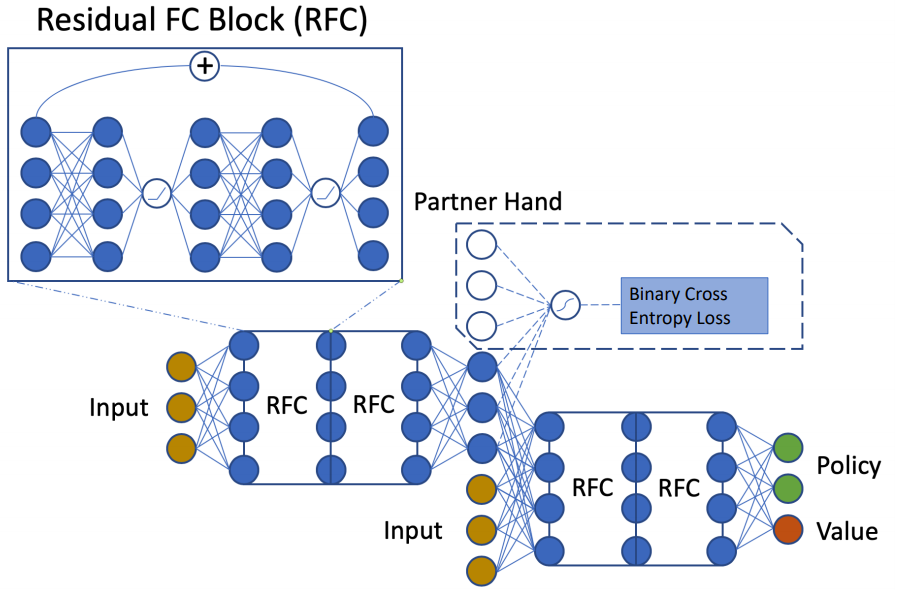 注意这里的两阶段训练没有用到任何人类对局,为的是能够无监督地学到全新的叫牌约定——让机器学到人类所不知道的新东西永远是很有意思的。