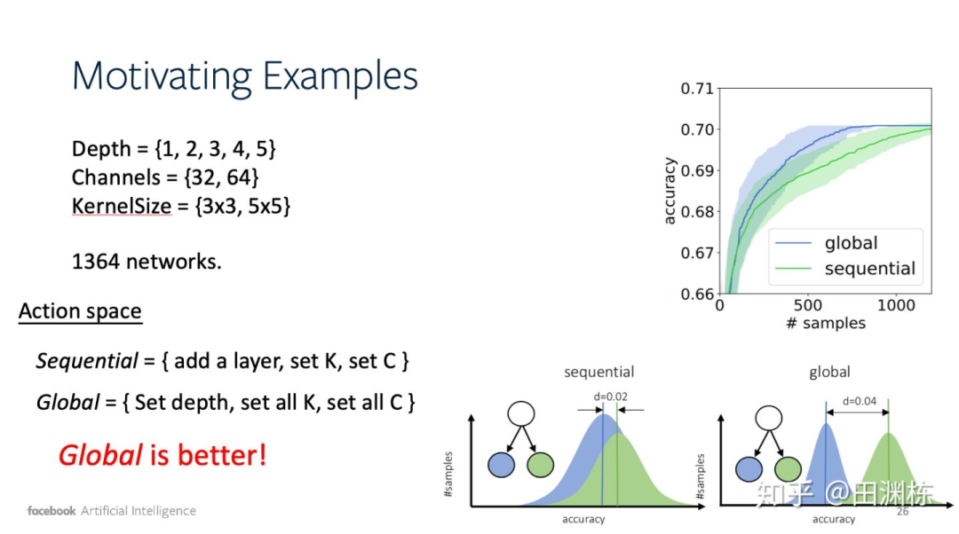 从图上可以看到,明显是先确定网络层数的方案效率更高(同样样本下准确率更高),因为相对其它参数,层数对最后网络准确率的影响更大,如果先按层数切分搜索空间,那搜索效率自然就提高了。