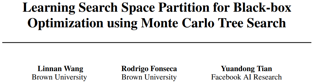 第二篇提出了一种新的黑盒优化的方法:LaMCTS (Latent Action Monte Carlo Tree Search),这个方法基于蒙特卡罗树搜索,但在这上面有改进。