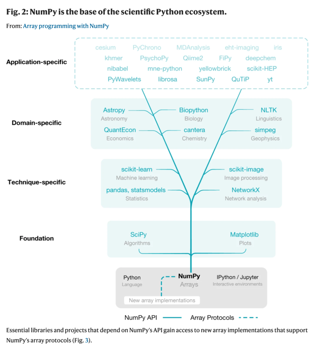 图 2:NumPy 是科学 Python 生态系统的基础。