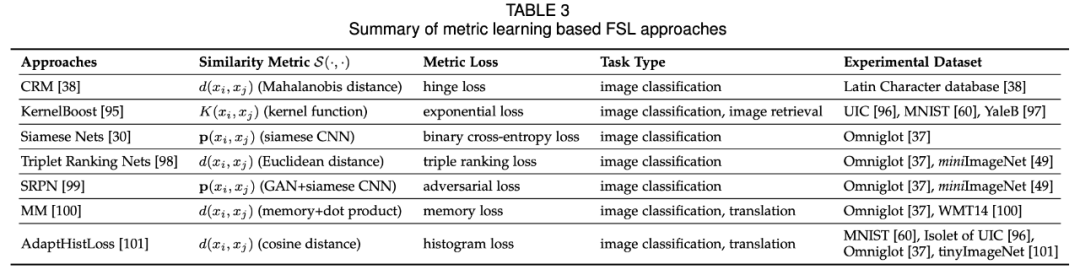 下表 3 则总结了基于度量学习的 FSL 方法的主要特征: