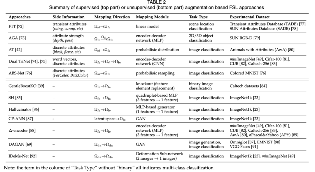 下表 1 总结了第一类 FSL 方法——基于生成模型的 FSL 方法: