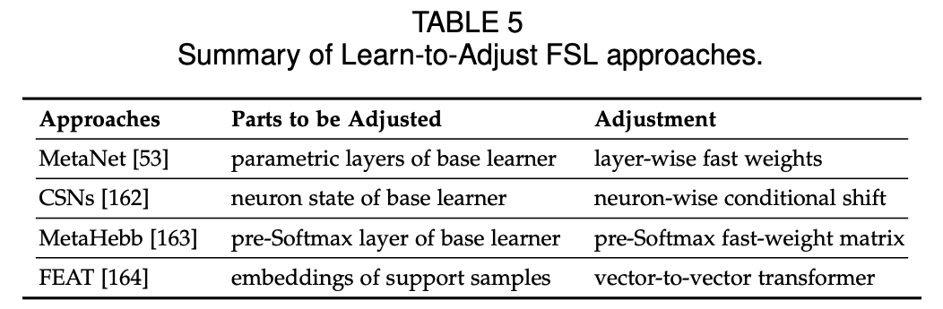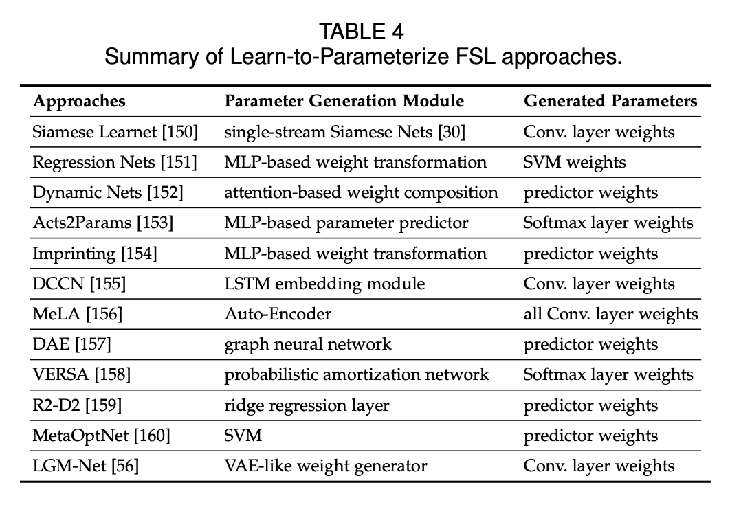 此外,这部分还介绍了基于元学习的 FSL 方法的五个子类别:Learn-to-Measure (L2M)、Learn-to-Finetune (L2F)、Learn-to-Parameterize (L2P)、Learn-to-Adjust (L2A) 和 Learn-to-Remember (L2R)。