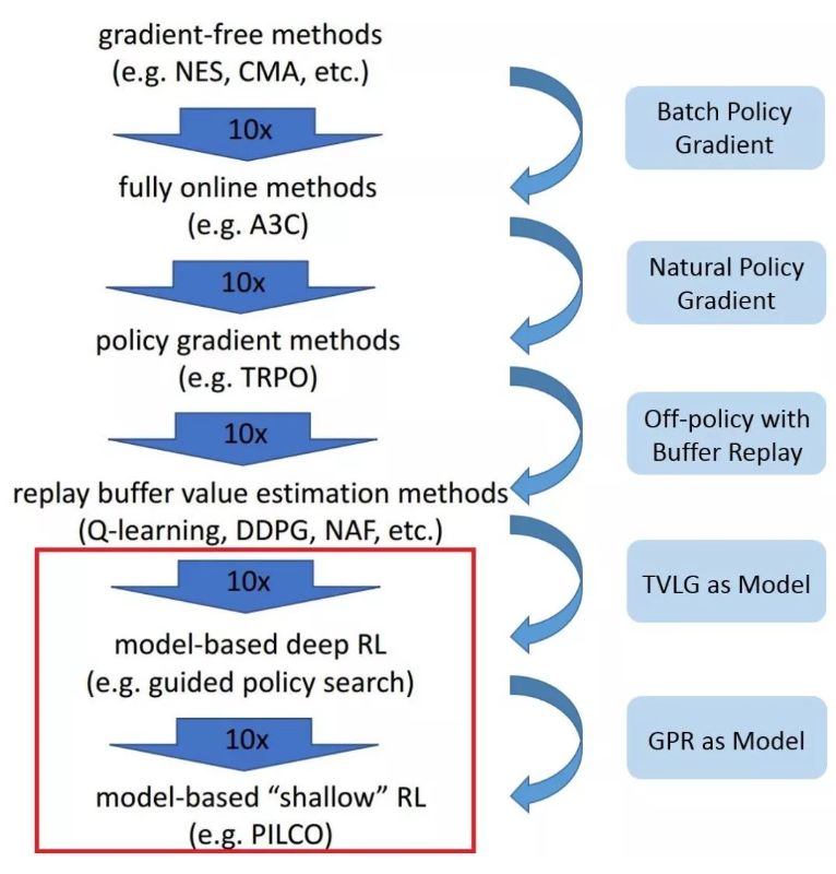 通过 Recht 的分析,我们似乎找到了 DRL 问题的根结。近三年在机器学习领域大火的 DRL 算法,多将免模型方法与 DL 结合,而免模型算法的天然缺陷,恰好与 Alexirpan 总结的 DRL 几大问题相对应(见上文)。