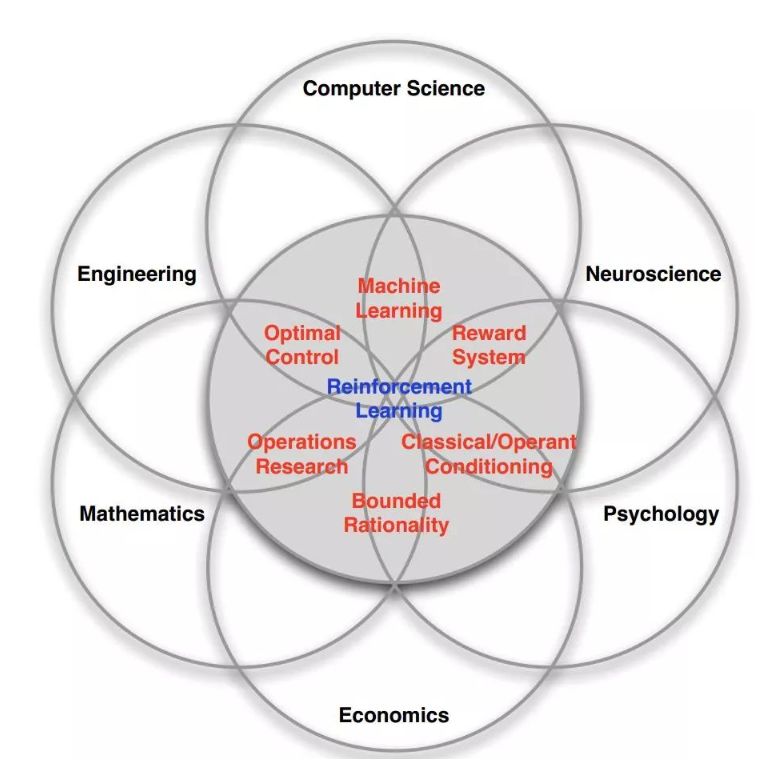 机器学习是个跨学科的研究领域,而 RL 则是其中跨学科性质非常显著的一个分支。RL 理论的发展受到生理学、神经科学和最优控制等领域的启发,现在依旧在很多相关领域被研究。在控制理论、机器人学、运筹学、经济学等领域内部,依旧有很多的学者投身 RL 的研究,类似的概念或算法往往在不同的领域被重新发明,起了不同的名字。