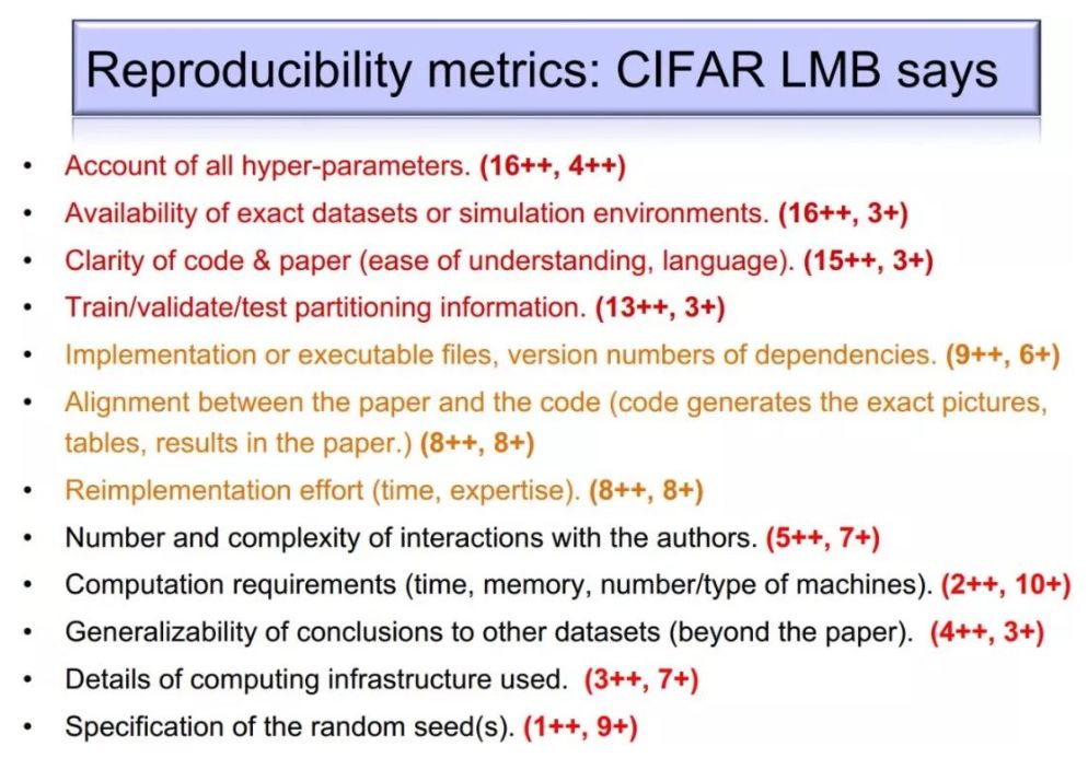 Pineau 基于大量调查提出的检验算法“可复现性”准则 [11]