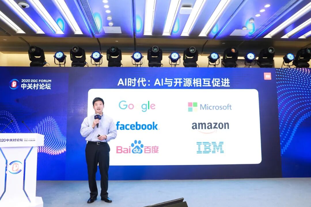 长期致力于小米技术研究与应用的崔宝秋也在本次论坛上分享了他的观点《智能新时代 拥抱开源》。他指出,云计算与大数据时代离不开开源,AI时代更是与开源相互促进。