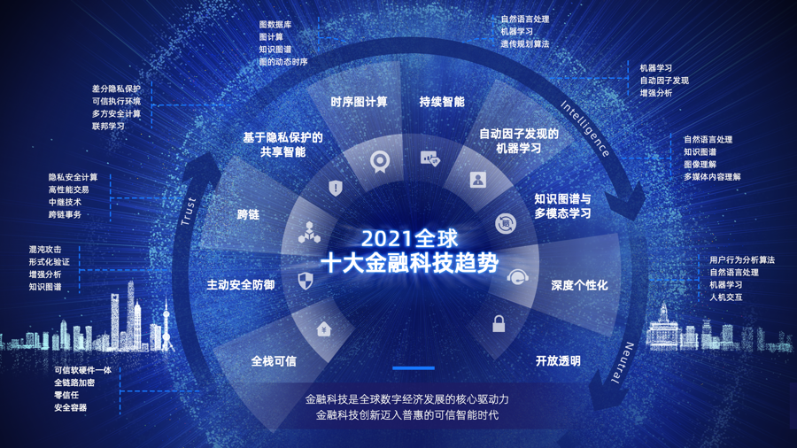 外滩大会发布了《2021 全球 10 大金融科技趋势》,6 个趋势与构建信任及隐私保护相关。