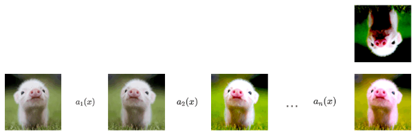一个数据增强过程 A(x) 对同一个输入应用一系列随机变换。