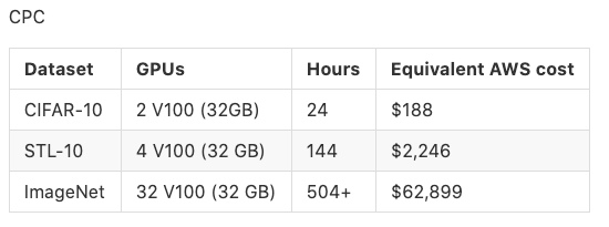 与所有相关的工作不同,我们通过真正亲自实现每一种方法生成了上述结果。实际上,据我们所知,我们实现的 CPC V2 版本是第一个 DeepMind 之外的公开实现版本。