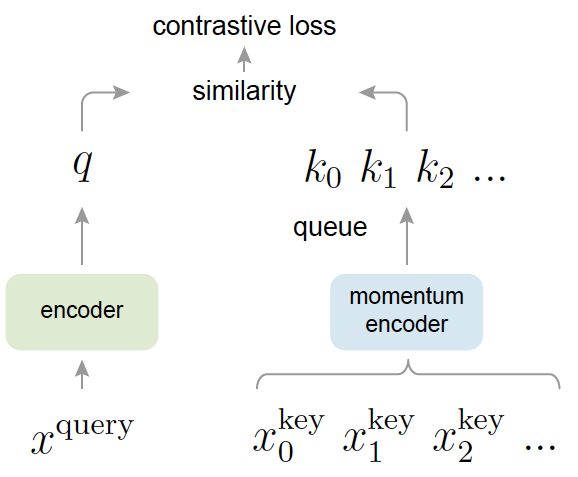 Moco 进行了与 AMDIM 相同的处理过程(仅仅用到了最后的特征图),但它保留了处理过的所有batch 的历史记录,并以此增加负样本的数量。这样做的效果是:用于提供对比信号的负样本数增加,它超过了单个batch 所得到的负样本数。
