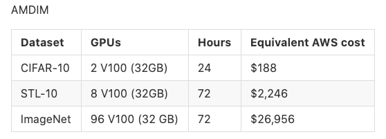 基于 23dn.24xlarge 示例的训练每小时需要花费 31.212 美元,下面是我们用于每种方法的计算资源: