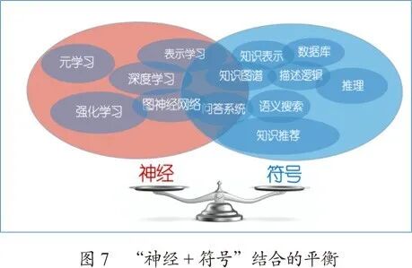 以上的研究现状表明,“神经+符号”的结合仍停留在仅以一方为主,并到另一方问题的适用或迁移,实现“神经+符号”真正有机结合的系统还任重道远。如何在神经和符号之间取得一个巧妙的平衡,将是衡量模型价值的关键,其范围涉及了目前几乎所有主流的人工智能研究,如图7所示。