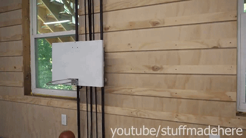 Shane Wighton 也看到了这个致命的缺陷,并在第三版中做出了重大改进:让篮板动起来接球。而你,只负责往墙上扔球就可以了。