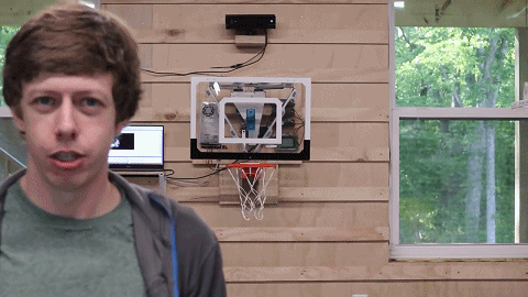 为了预测球的轨迹、确定篮板的移动方式,Wighton 专门写了一个校准程序来确定摄像头与篮板、墙等室内物体的相对距离。