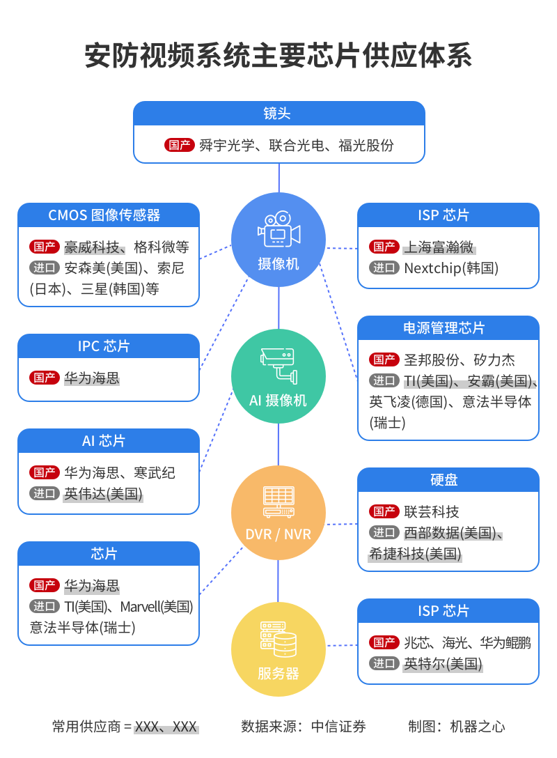 由「小海思」供给的IPC视频编解码芯片、NVR/DVR视频录像芯片一旦缺货却近似无解,而它们均是安防视频网络中的关键芯片,影响的是整个产品与应用下游。