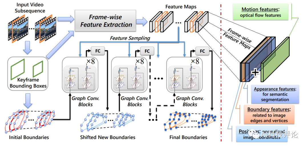 视频分析已经朝着更详细的解释性(例如分割)方向取得了令人欣慰的进展。然而,这些任务在空间和时间上越来越依赖于密集的注释训练数据。由于这种注释是劳动式密集型的,因此很少存在具有详细区域边界的密集注释视频数据。我们工作的目的就是为了解决这个难题,通过学习如何从目标区域的稀疏注释边界框中自动生成视频的所有帧的区域边界。我们用一个体图卷积网络(Volumetric Graph Convolutional Network--VGCN)来实现这一点,该网络学习使用周围外观和运动的时空体积迭代地找到区域边界上的关键点。VGCN的全局优化使其比现有的解决方案具有更强的泛化能力。我使用两个最新数据集(一个真实数据集和一个合成数据集)的实验结果,包括消融研究,证明了我们方法的有效性和优越性。