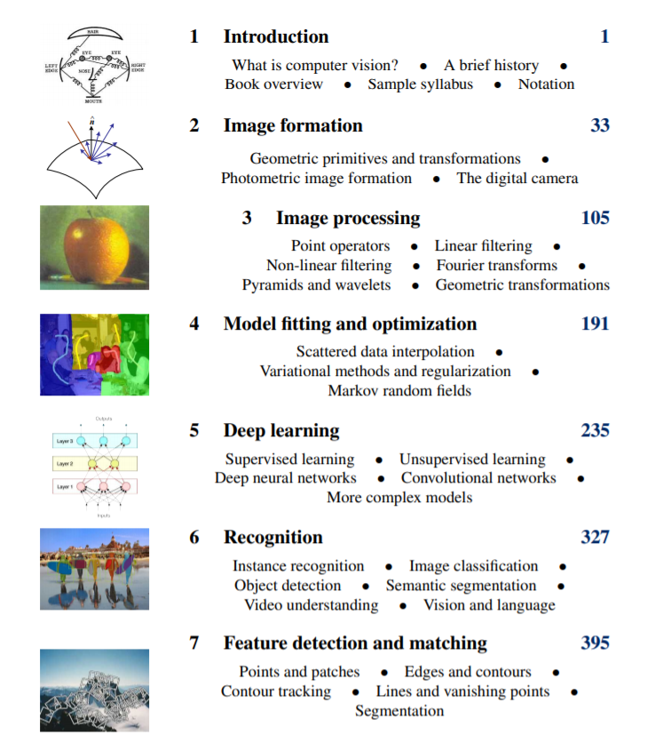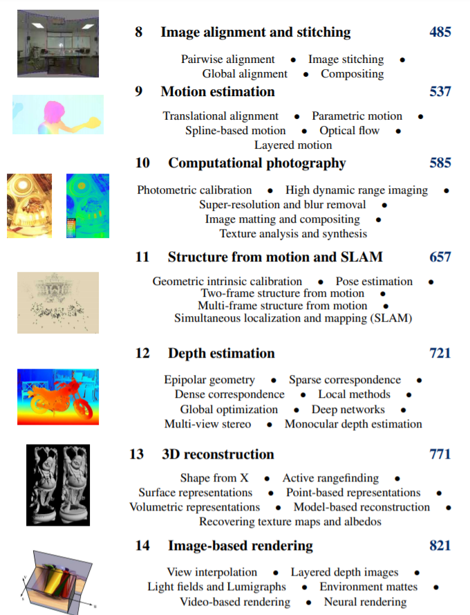 第一版的《计算机视觉:算法与应用》共计 14 个章节,分别为:
