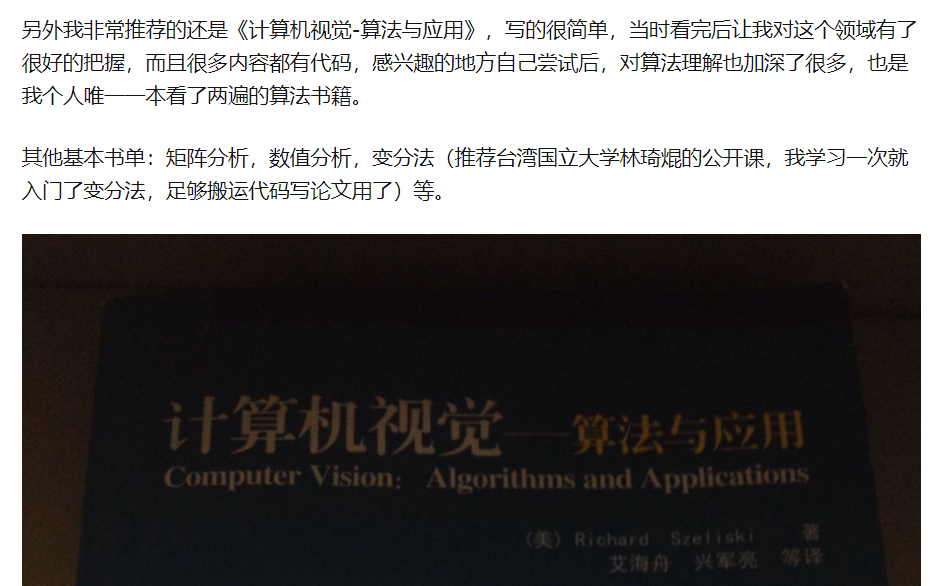 作为一本被广泛采用的教材,《计算机视觉:算法与应用》非常受初学者欢迎,有人称赞其「为计算机视觉技术的初学者(本科生)提供了广泛的标准计算机视觉问题的坚实基础」。