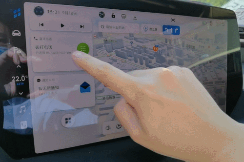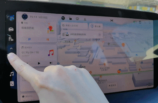 使用起来,首先感觉就是它解决了以往车机上「画面卡顿」的问题,毕竟用旗舰手机的芯片带动一块 2k 屏,怎样都是绰绰有余的。P7 的车载智能系统被称为 Xmart OS 2.0,左侧和最上方是一竖排的快捷按键,左侧 1/3 区域则是一系列主要功能的卡片,剩下面积最大的区域是由地图所占据。这块屏幕使用屏幕触摸、方向盘按键(滑动也可以)以及语音交互都可以控制。