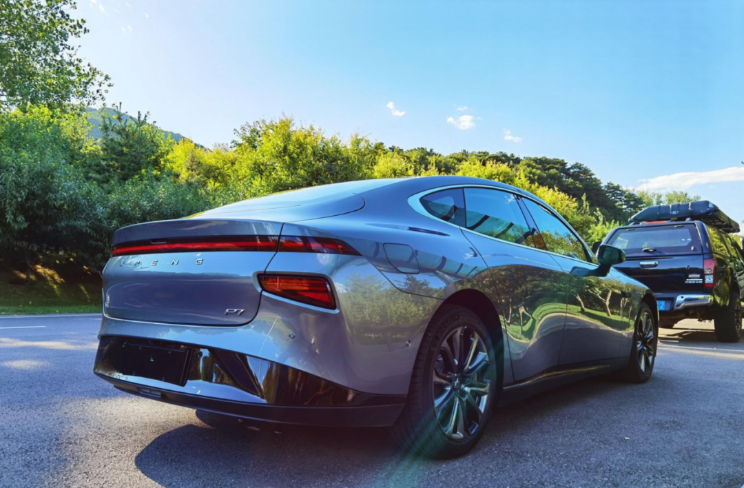 后来我们又拿到了一辆 P7,这辆车近看起来果然不一般,在电动车里颜值算得上优秀了: