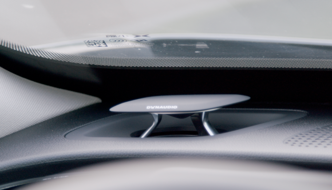 坐到车里,头上是两块超大玻璃全景天窗,没有启动发动机的按钮,没有「手刹」按钮,连开关电源键都没有——只要人一上车,系统就会启动,挂上 D 档一踩油门就走。如果想听音乐的话,18 声道的丹拿(Dynaudio)音响可以满足你,甚至在驾驶座椅里还有两个扬声器。