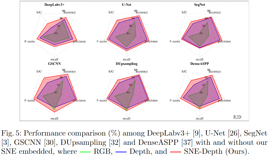 数据集:DIODE dataset 、The KITTI road dataset 、The SYNTHIA road dataset 、本文的R2D road dataset(sites.google.com/view/sne-roadseg)
