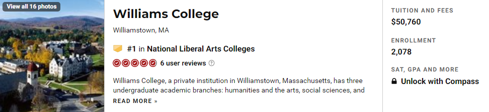 No.1:威廉姆斯学院