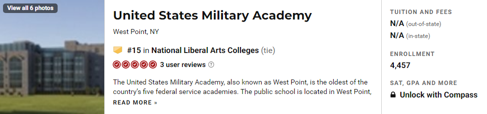 No.6:鲍登学院、克莱蒙特·麦肯纳学院、美国海军学院