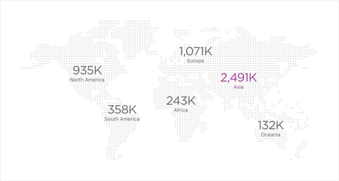 Java 开发者地域分布:集中在亚洲,中韩比例最高