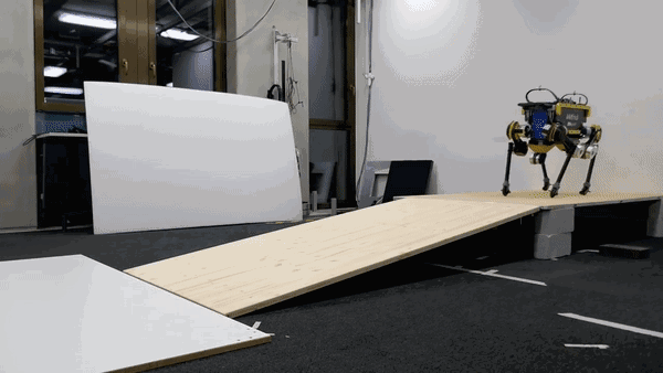 机器狗还能注意到下坡,并直接享受这个过程,停止蹬腿滑行。在下坡的过程中,感觉是整个狗都要飞翔起来~