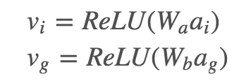 最终全局图像特征将与 word embedding 拼接在一起成为 LSTM 的输入:xt=[wt;vg] 局部图像特征则用在了 attention 部分。