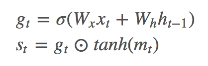 其中 xt 是 LSTM 的输入,mt 是 memory cell(有些论文里用 ct 表示)。