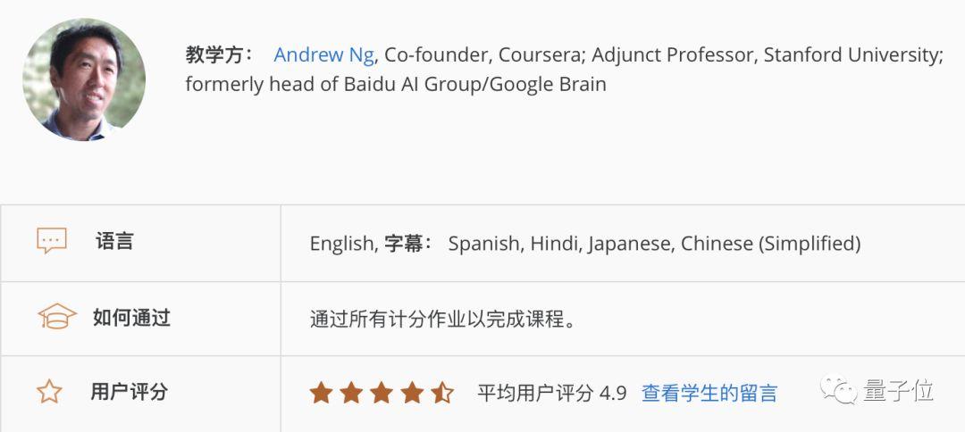 Coursera是吴恩达参与创办的在线教育平台。吴恩达在这个平台上开设的课程主要包括两个,我们也给一下传送门。